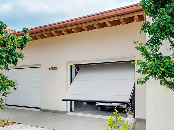 - Vantaggi: massima ottimizzazione dello spazio dentro e fuori dal garage, elevata coibentazione termica e acustica, silenziosità, e notevole versatilità estetica e costruttiva.